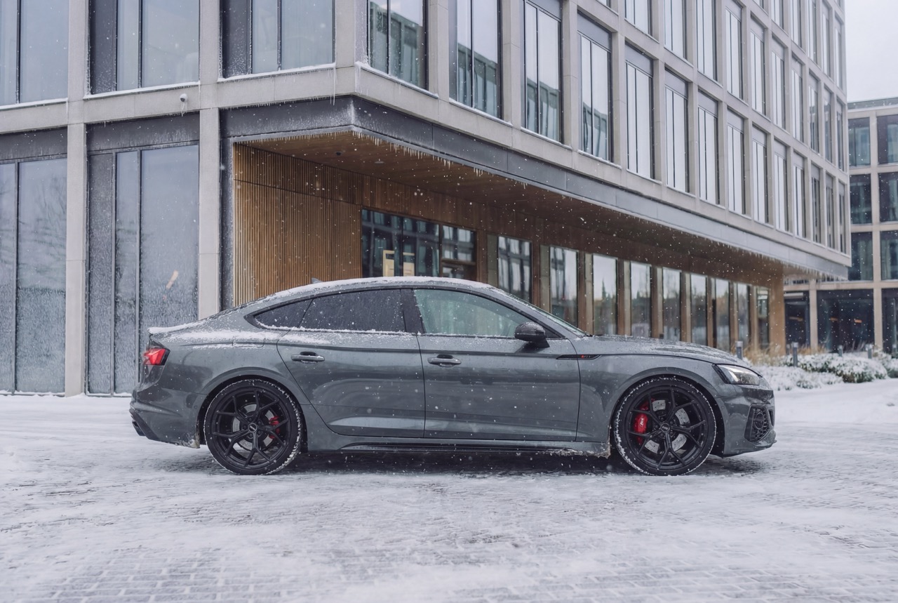 Stylistyka Audi RS5 Performance to kwintesencja sportowego charakteru w luksusowym opakowaniu. Sportowe nadwozie wyróżnia się szerokimi nadkolami, dynamicznymi liniami oraz agresywnie zaprojektowanym grillem Singleframe z czarną ramą, który nadaje przedniej części zdecydowanego i atletycznego wyglądu. Duże wloty powietrza, wyraźne przetłoczenia maski oraz detale w kolorze czarnym podkreślają wyjątkowy charakter RS.