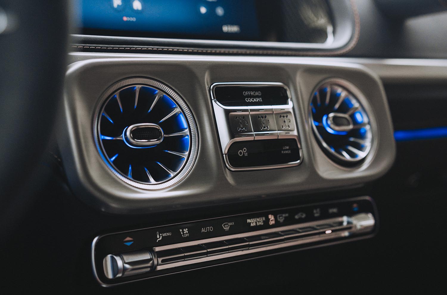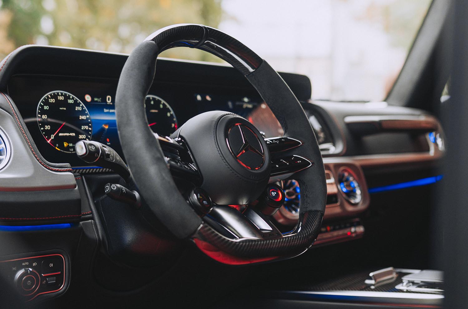Technologicznie G63 AMG to prawdziwe dzieło inżynierii. Na pokładzie znajdziemy systemy wspomagające kierowcę, takie jak adaptacyjny tempomat DISTRONIC, asystent martwego pola, system kamer 360°, asystent zjazdu ze wzniesienia oraz tryby jazdy AMG DYNAMIC SELECT, które pozwalają dostosować charakter auta – od komfortowego po ekstremalnie sportowy.